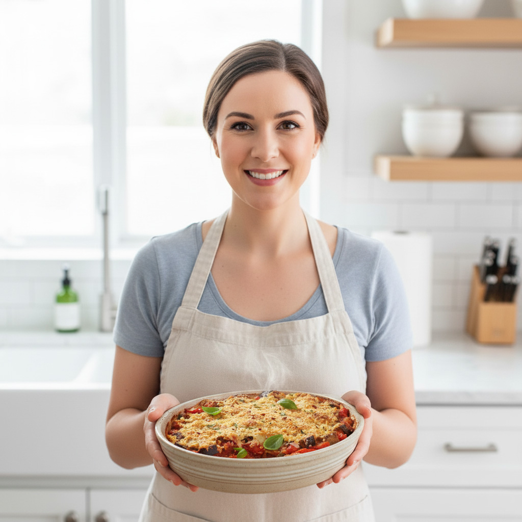 5. Assemble the Gratin: Spoon the eggplant mixture evenly into your prepared baking dish.